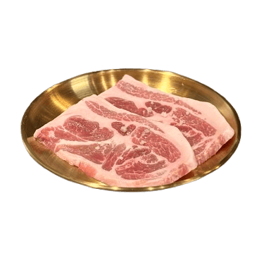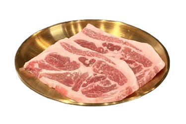 Thinly sliced pork belly with a perfect balanced of fat and lean meat